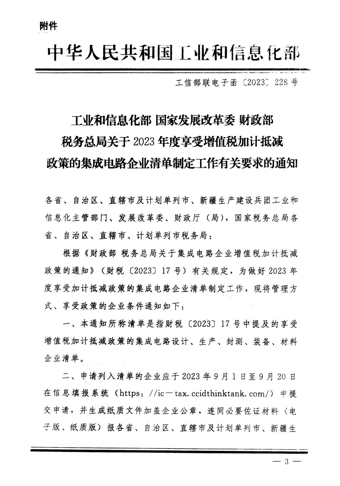 關(guān)于2023年度享受增值稅加計(jì)抵減政策的集成電路企業(yè)清單制定工作有關(guān)要求的通知